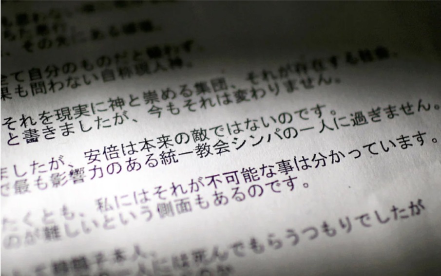 Július 17-e körül robbant a hír, hogy előkerült Jamagami levele, amelyet a merényletet megelőző napon adott fel egy barátjának. A borítékra nem írt feladót és a nyomtatottan írt levélhez mellékelte annak a megállapodásnak a másolatát, amelyet Yamagami és édesanyja kötött az Unióval (fent nevezett Egyház) az adomány visszatérítéséről. Szerepelt az iraton Yamagami neve és az akkori címe, így tudta a rendőrség beazonosítani a feladót.