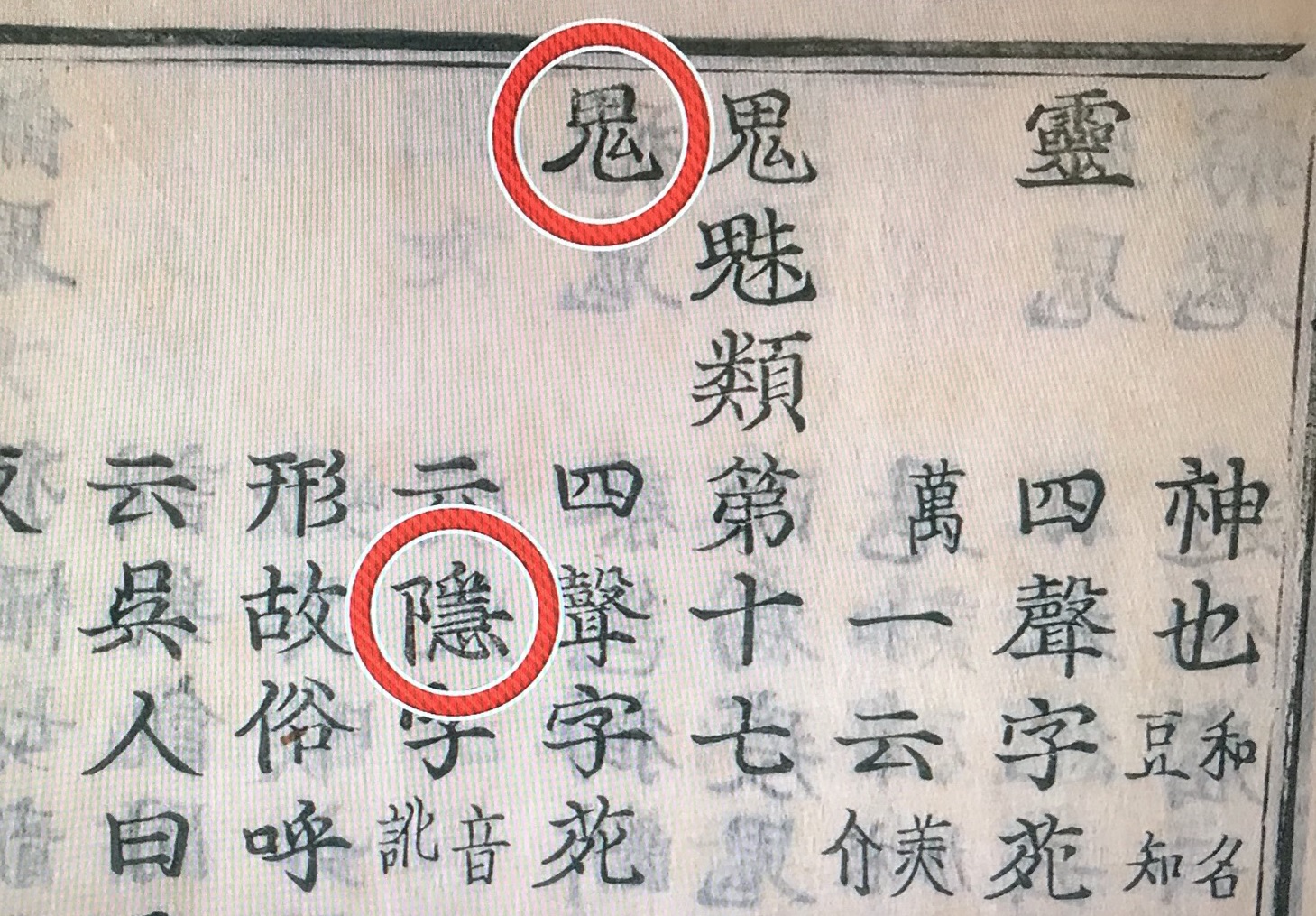 A Heian korban (794-1185) a 隠 jelet onyinak ejtették és a kandzsi jelét kicserélték a 鬼 jelre.