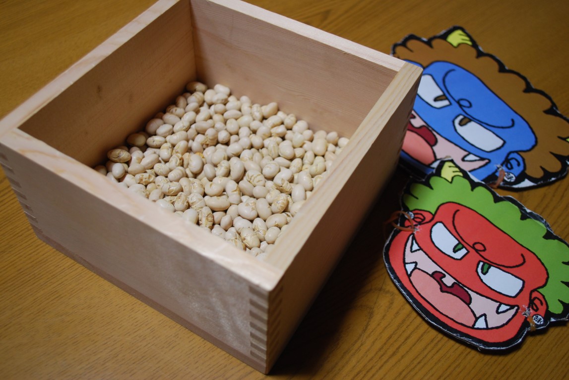 A tavasz hivatalos beköszöntét megelőző napon, ami általában február 3-ra vagy 4-re esik, a háztartásokban az a szokás, hogy szójababot hintenek el a lakásban az „ördög kifelé, szerencse befelé” felkiáltással. A kisgyermekek nagyon élvezik ezt a szertartást, valamelyikük felveszi az onyi álarcot és ijesztgeti a többieket.