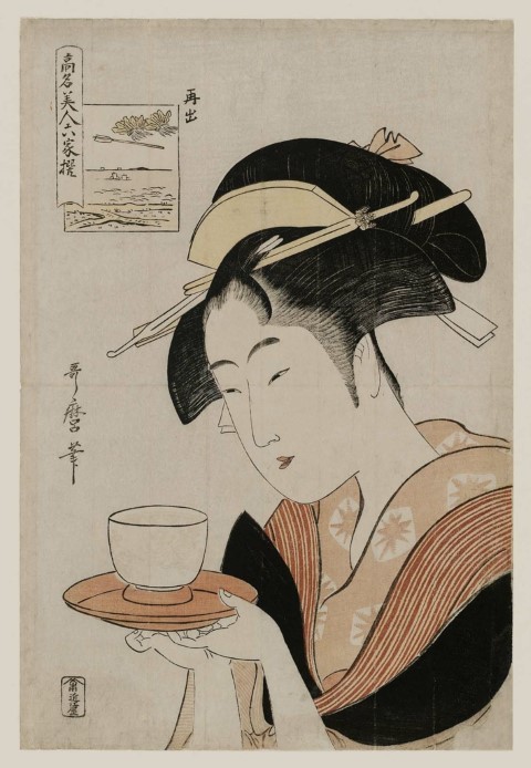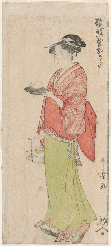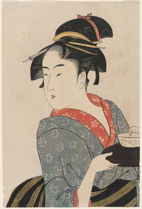Kitagawa Utamaru ukiyo-e festő, korának kiemelkedő mestere volt. Mondhatjuk úgy is mai szóval producer, menedzser, akinek jó szeme volt ahhoz, hogy meglássa mire harap a közönség. Az ő egyik híres felfedezettje, Naniwaya Okita (ejtsd: Nanivaja Okita) az edo-i (ma tokiói) Asakusa (ejtsd: Aszakusza ) templomnegyed egyik teaházának felszolgálólánya, akinek kisugárzása és aurája nem csak Kitagawát bűvölte el, hanem a teaház vendégeinek nagy részét is.